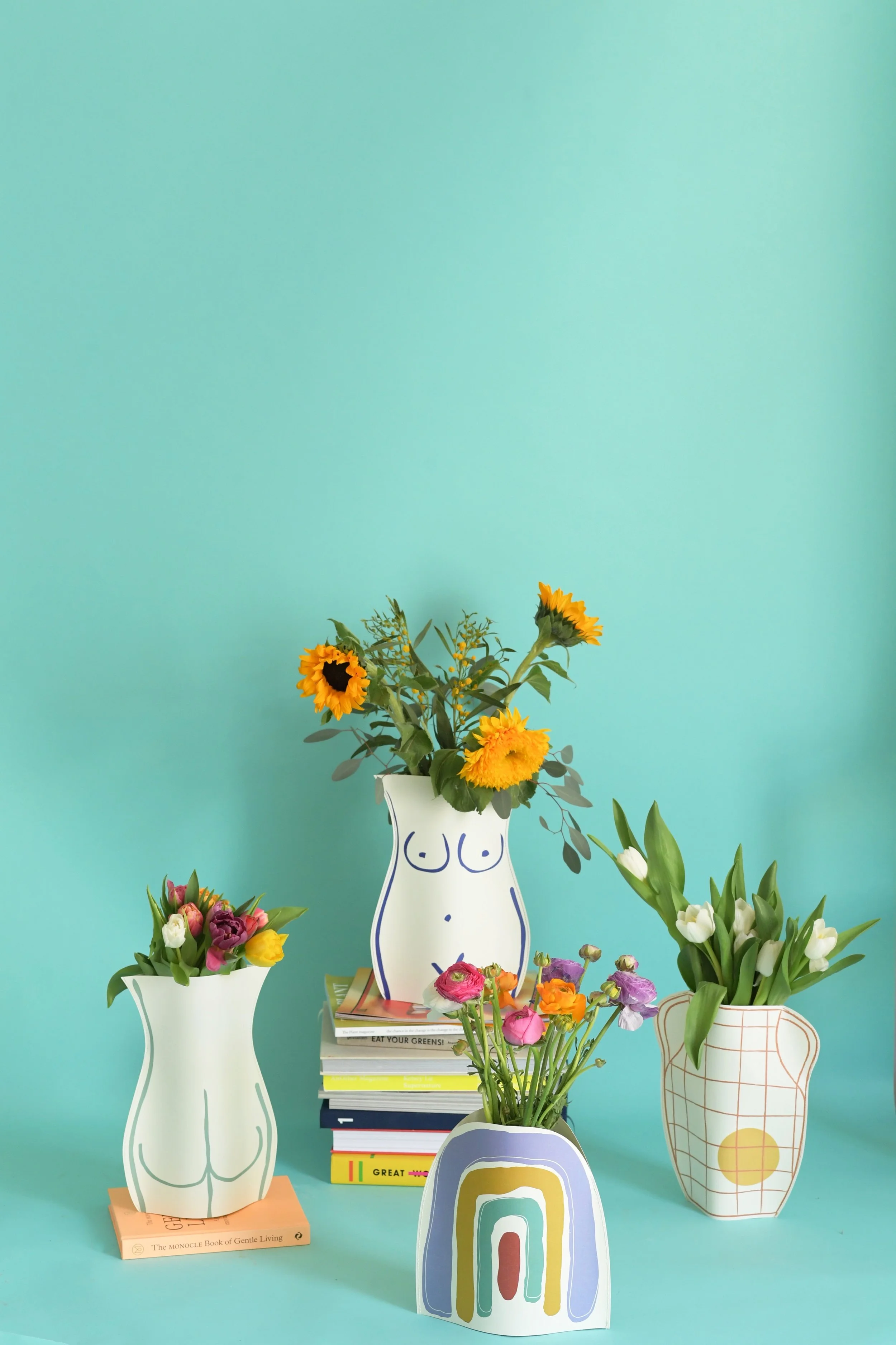 From left to right: “LÉ BUTT”, “LÉ BOOB”, ”LÉ RAINBOW”, “LA KOUZA”; handcrafted paper vases on 100% recycled paper for Pardón my Vase. Issa recently had an in-person paper vase making event in Larnaca, Cyprus where she met with followers and helped them create their own special paper vases